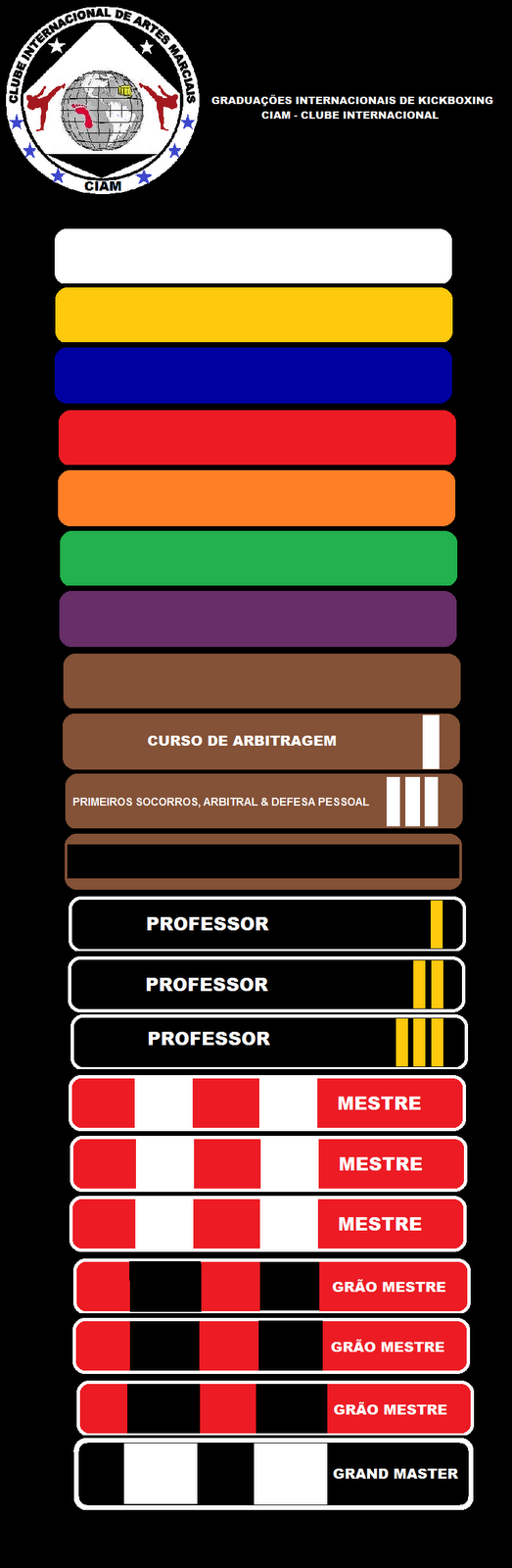 BRAZILIAN KICK-BOXING: Destinado a Defesa Pessoal Aplicada aos dias atuais onde envolve combate com projeção, torções, imobilizações, socos, chutes, ataques táticos especiais para professores e alunos podendo ser aplicado a partir dos 6 anos os fundamentos da defesa pessoal e aos 18 combate com contato pleno agregado com estilo thai kick k1 permitido uso de cotovelo SOMENTE A UTILIZAÇAO DE LUVAS DE COMBATE EXTREMO